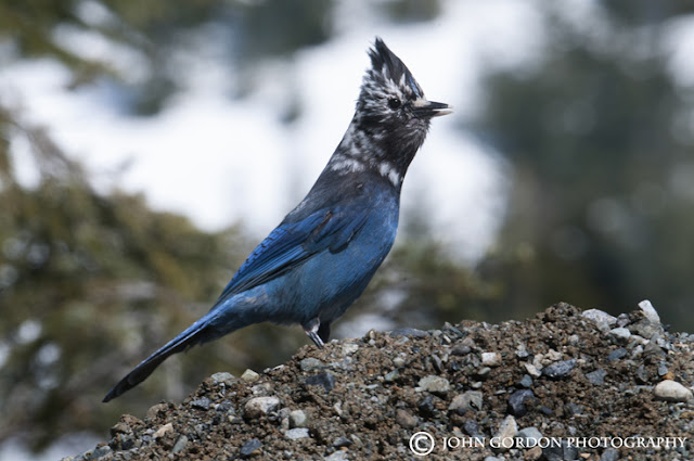 The bird can be found easily next to the office just before the chair lift. Take some offerings and you'll find the flock. Also present are a few Gray Jays.